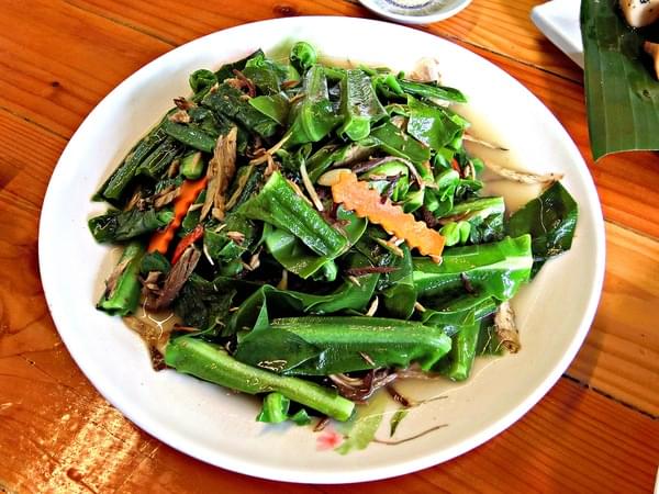 山蘇炒魚乾,山蘇口感清脆,魚乾富含鈣質。