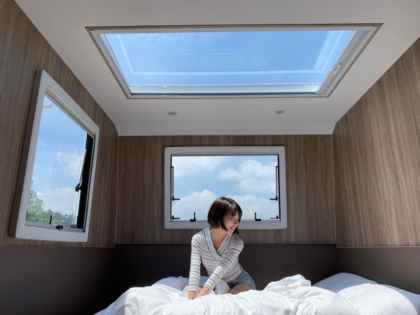 除了民宿之外,還有提供豪華免裝備露營車選擇,坐擁整片療癒山林和平靜的湖水,彷彿進入世外桃源一般,吸取大自然芬多精,無敵天窗還可躺床望星星。