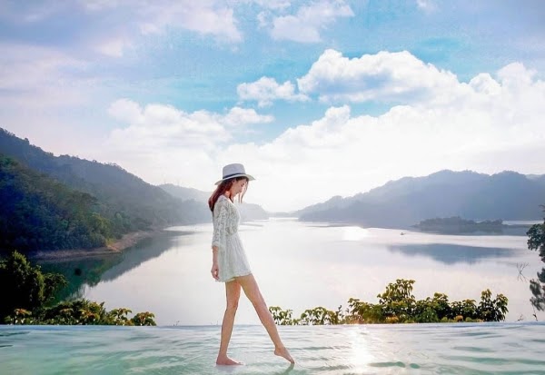 被譽為全台最美的景觀餐廳,在充滿少女心的蒂芬妮綠水池中,擺放著一架純白木製鋼琴及咖啡桌椅,搭配獨一無二的山光水色,景色怎麼拍都美,還以為置身國外呢!