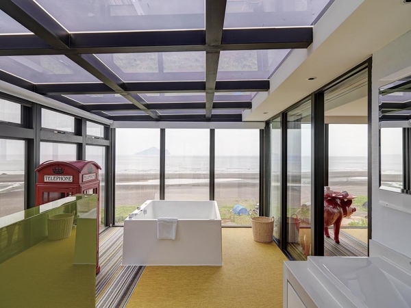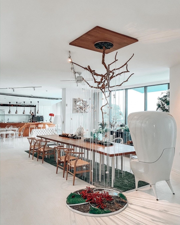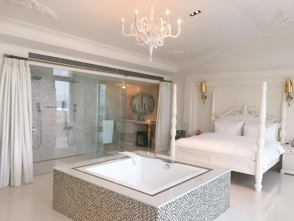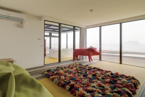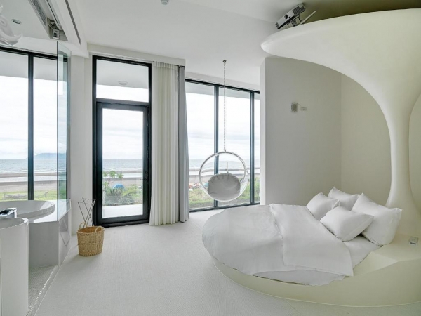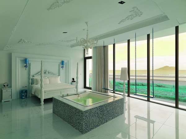 房間為二樓, 使用面積20坪, 有180度七米寬落地窗和一個室內球形鞦韆,可供住房貴賓欣賞美麗的海景和日出。