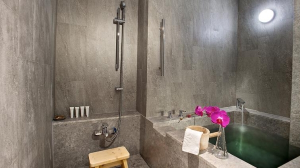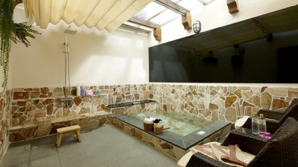 佔地400坪的天幕風呂,座落於游泳池畔,分為『水流養身步道區』、『芳香浴池區』、『個人湯屋』等主題區;擁有各項豐富的設備,有助舒緩放鬆全身肌肉。