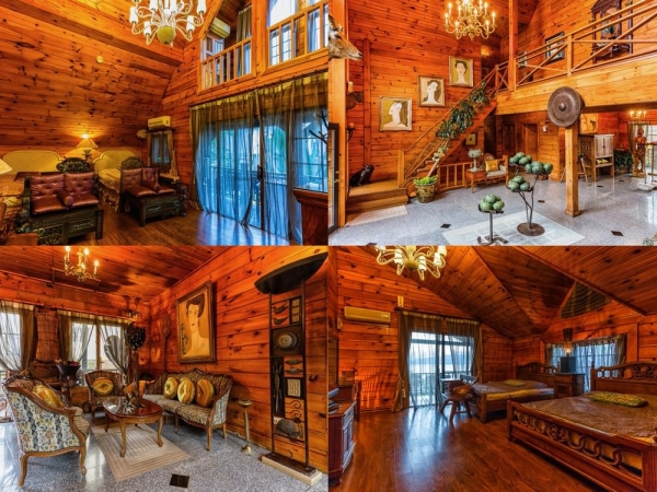 ▲日月潭富豪群渡假民宿擁有400多坪的湖畔花園,遠從美國進口原木建成雅緻小別墅,木造大廳內有許多主人收藏來自世界各地的藝術品和女主人手繪的人物畫作品,是充滿人文藝術情調的渡假別墅。