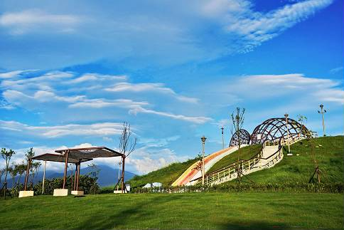 2020年新設置的遊戲園區,園區內容除了有共融式的鞦韆、翹翹板、天旋地轉等設施,更利用公園內既有高低差約7.6公尺的大草坡,興建具有陶罐意象長約20公尺的磨石子滑梯以及滑草場,設置以考古為主題的尋寶沙坑,成為北臺灣第一座結合文化探索與環境地貌的兒童共融遊戲場。