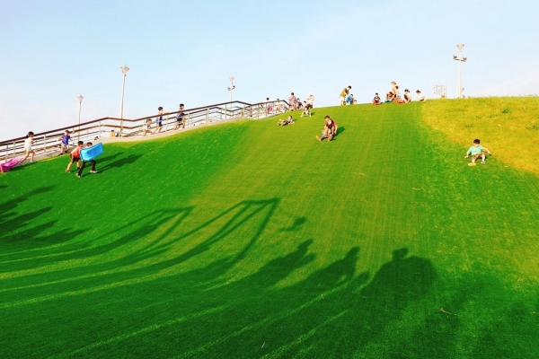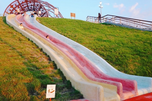 位於十三行博物館旁的「十三行文化公園」,佔地寬廣、視野遼闊,超大片草坪,是個野餐夯點喔!絕對是超適合帶著孩子來這裡放電的地方,擁有超長20米的磨石子滑梯、滑索飛椅、沙坑滑草等等,而這邊還有很多「米飛兔」的裝置藝術和造型公仔,喜歡米飛兔的人千萬別錯過!