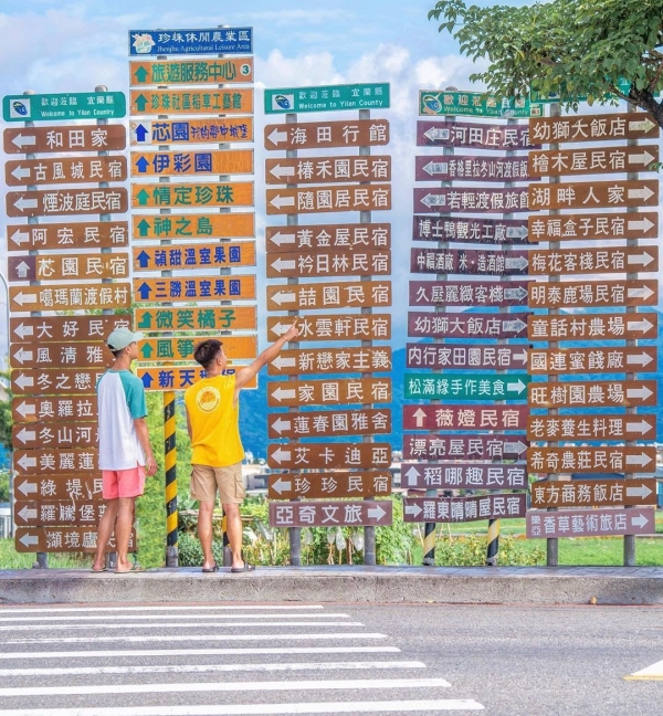 位於宜蘭羅東交流道下有一處奇景,就是宜蘭民宿密密麻麻的路標牌,而這個路口的紅綠燈只有50秒,必須速讀找尋需要的路牌,也因此在網路上爆紅!