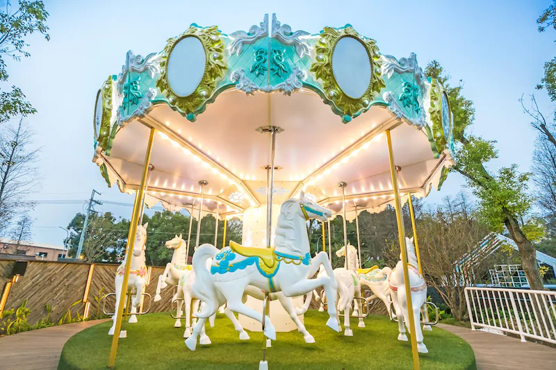 16:30-抵達飯店 (足球場-愛心樹下拍照、光之證婚教堂拍照、17:00乘坐旋轉木馬)