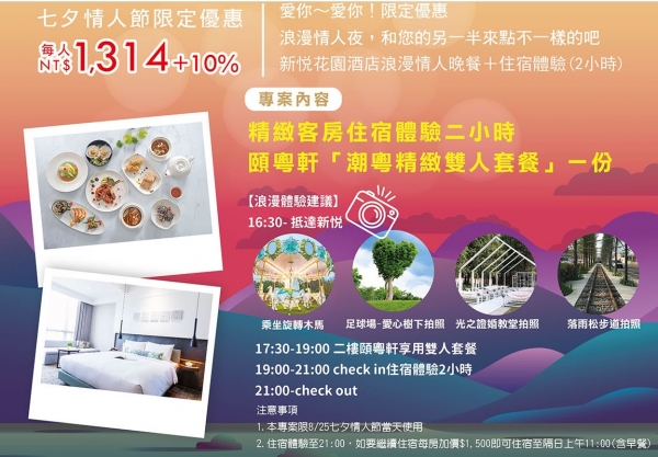 新悅花園酒店【愛你~愛你!七夕情人節限定優惠】