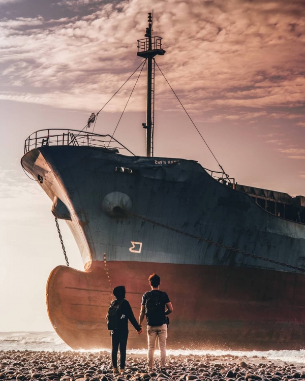 去年的10月份一艘發生海難的宏都拉斯籍貨輪,擱淺在後厝港,意外成為近日熱門景點,諾大的貨輪在孤獨的停駛在岸邊,散發一種淒涼的美感,彷彿台版的鐵達尼號!