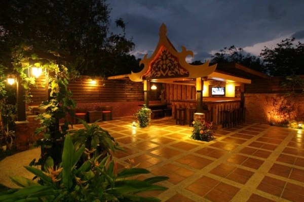 休閒活動區:景觀花園、草皮綠地、原木造型搖椅。