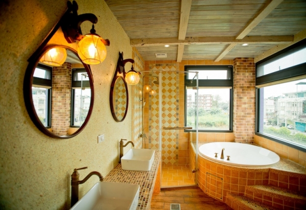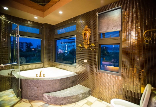 金碧輝煌的浴室乾淨又舒適,採乾溼分離設計,還附有超大浴缸,可以讓你一邊享受泡澡一邊欣賞窗外景色,完全看得出老闆的用心!