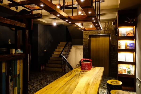 一走進大廳就能感受到濃濃的古堡氛圍,工業風格的裝潢設計、飾品擺設都超有質感,圓弧石柱牆搭配石砌旋轉樓梯,一旁還有復活島的摩艾石像,營造出浪漫又神秘的氣息,將帶領著旅客踏上奇幻旅程!
