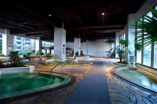 包含了空中戶外游泳池與造型獨特的SPA池,得以讓貴賓們直接沈浸在蘭陽風土的懷抱中。其餘池岸空間則設置多樣化的SPA設備,如淺灘氣泡浴、按摩噴頭座椅、浮浴池、鵝頸衝擊浴、小島雨淋浴、岩盤浴(需額外收費,請先預約)藉由各式輕重有致的水柱打擊刺激各處穴道,放鬆筋骨與心情。