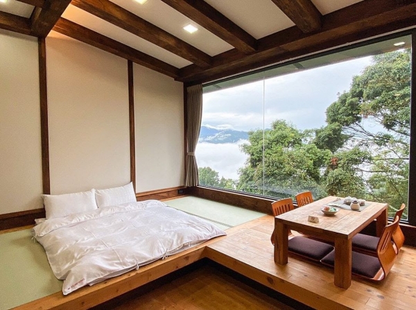 位於阿里山半山腰一間隱藏版日系旅店,房內擁有超大片雙景落地窗,放眼望去整片茶園、雲海有夠仙,讓人彷彿置身於壯闊優美的山林裡,再搭配日式榻榻米及木質感家具,有種回到家的溫暖,身心靈都超放鬆,是個遠離喧囂的好住宿啊!