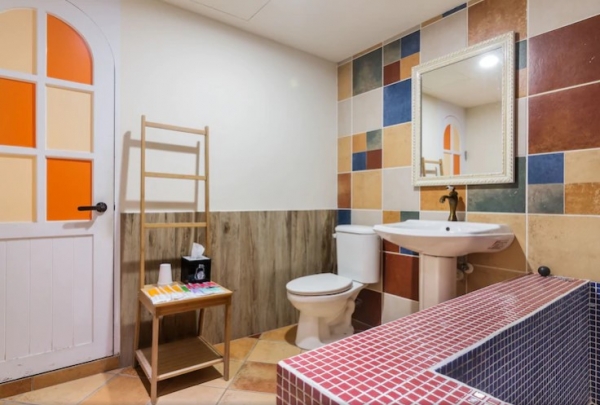 後面的小房間是浴室 這間紅磚房是有泡澡浴缸的喔~~