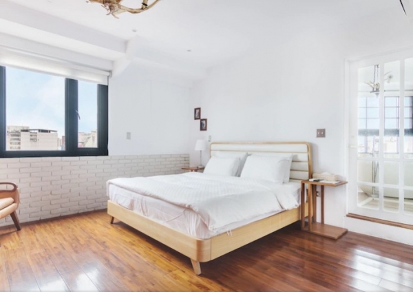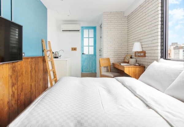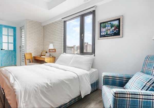 就白和藍兩種色調 乾乾淨淨的、俐落又舒服的感覺,非常適合情侶來住喔!