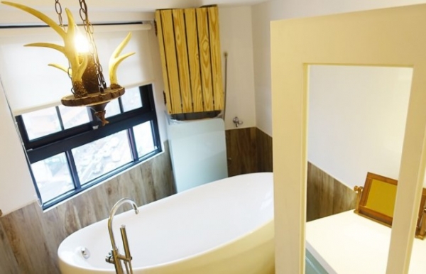 鹿角的吊燈也太有藝術感了吧,一進門都是香氛的舒服氣味,木質地板和牆面打造出房間好質感