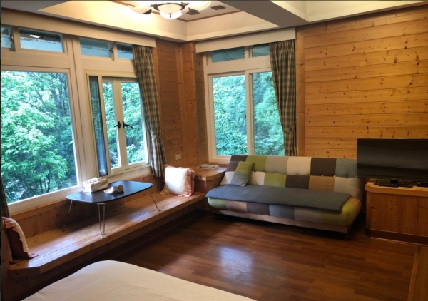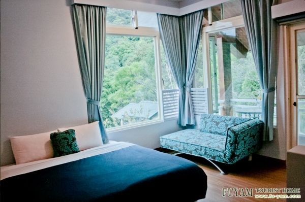 溫馨的雙人房型,藍綠色調很森林系,每間房都有大片的景觀窗,好讓旅客能夠在房內就能欣賞窗外美景,就像住在玻璃屋內,寬敞又舒適,設備應有盡有!