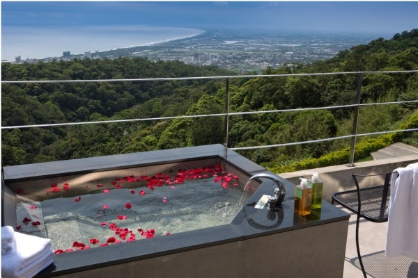 房外陽台還有個露天湯泉,讓你一邊泡湯一邊欣賞絕美景緻,人生好享受啊!