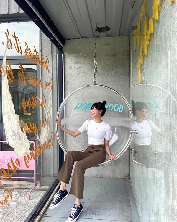 位於平鎮一間超夯的咖啡廳,除了外面有LOVE造景的綠意大草原、夢幻教堂超療癒之外,裡面每個角落也都超好拍,其中最多人搶拍的就是這顆透明球吊椅,有夠夢幻啦!
