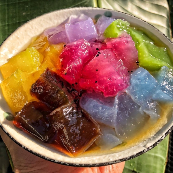 四十年的老店,古早味粉粿冰應該是很多人的童年回憶吧!老闆娘特製夢幻粉粿冰,純天然原料藍色、紫色是用了蝶豆花、紅色是火龍果,綠色是抹茶、黃色是原味粉粿、咖啡色是黑糖,可能是因為原料水分的關系,每一種口味的口感都不太一樣,吃下去滿是驚奇。