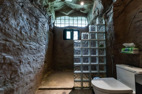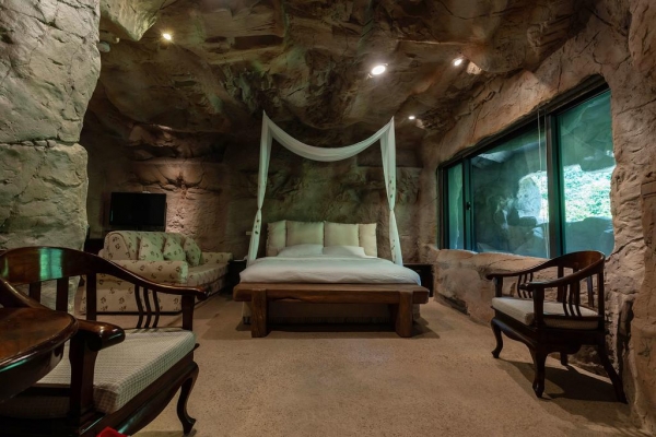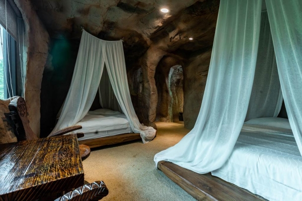 其中最吸睛的就是「黑水房」啦!整間房以水泥為主軸設計,搭配木質桌椅、白紗蚊帳床型,超像住進洞穴中,感受最原始的自然氣息!