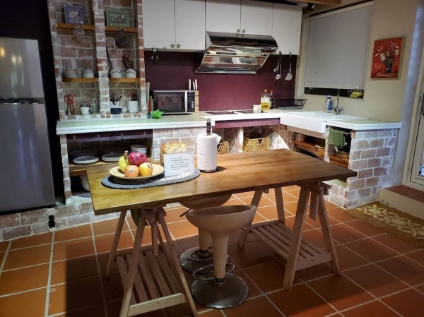 別墅共有三間房,還擁有一間超大客廳,L型沙發椅怎麼坐都行,還有餐廳與廚房,因別墅為民宿主人自住,所以裡面的設備都是很新穎又完整!早餐的部分屋主會準備好所有的材料讓房客體驗自行DIY的樂趣。