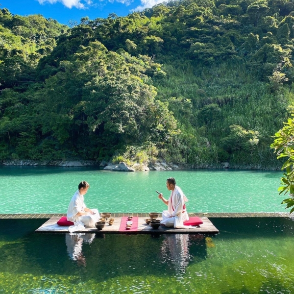 除了住宿以及飲食以外,還有許多娛樂活動可以欣賞,像是下圖的「棋不語」,兩位表演者坐在木板上漂浮在池畔上下著沒有棋子的局,跟著音樂帶著觀眾進入寧靜的世界!