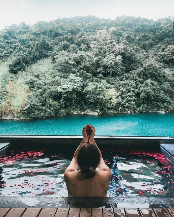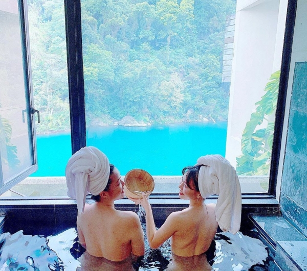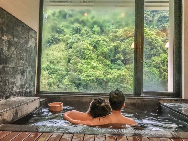 來溫泉渡假村就是要體驗他們的泡湯池,房內的泉池皆夠容納第二人,能和伴侶一起泡湯,還有大片景觀窗可以觀賞美景,實在是太浪漫啦!