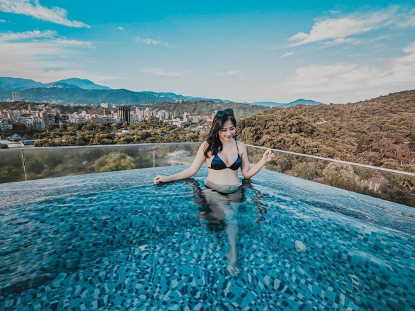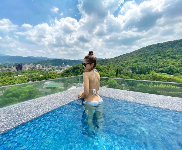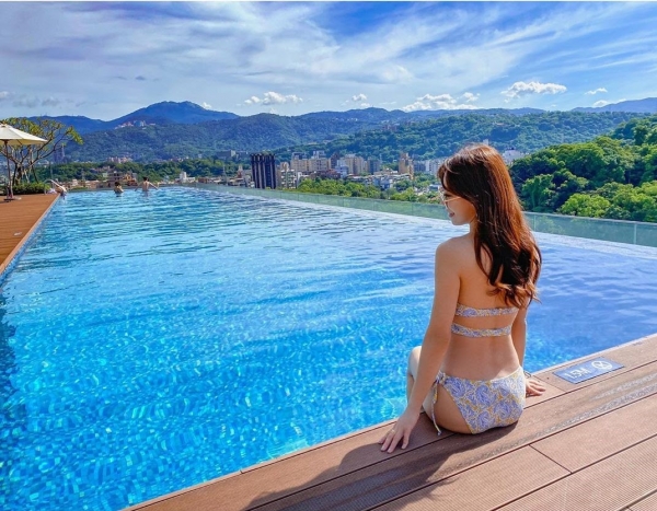 位於士林萬麗酒店的頂樓,有著網美最愛的無邊際泳池,旁邊附有躺椅可以休憩,飯店也有提供毛巾給予擦拭,邊游泳邊能欣賞北部山巒環繞的獨特美景!