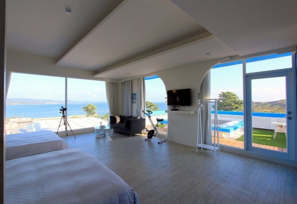 民宿提供2人~6人房型,每間房都可望向無敵海景,部分房型還有獨立陽台以及戲水池!適合親子旅遊或是閨密的小旅行!