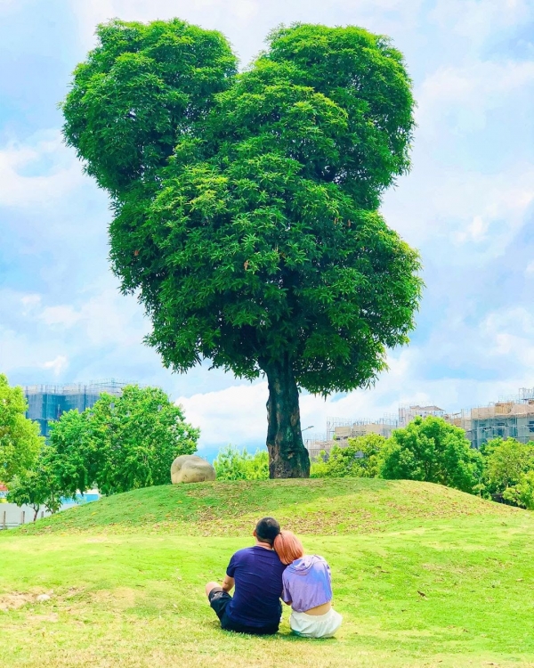 位於北屯的「萬坪公園」是一個適合全家週末踏青的好去處,裡面有個超級大草坪可以讓人舉辦野餐活動,其中最吸睛的就是神似米老鼠的這棵米奇樹啦!