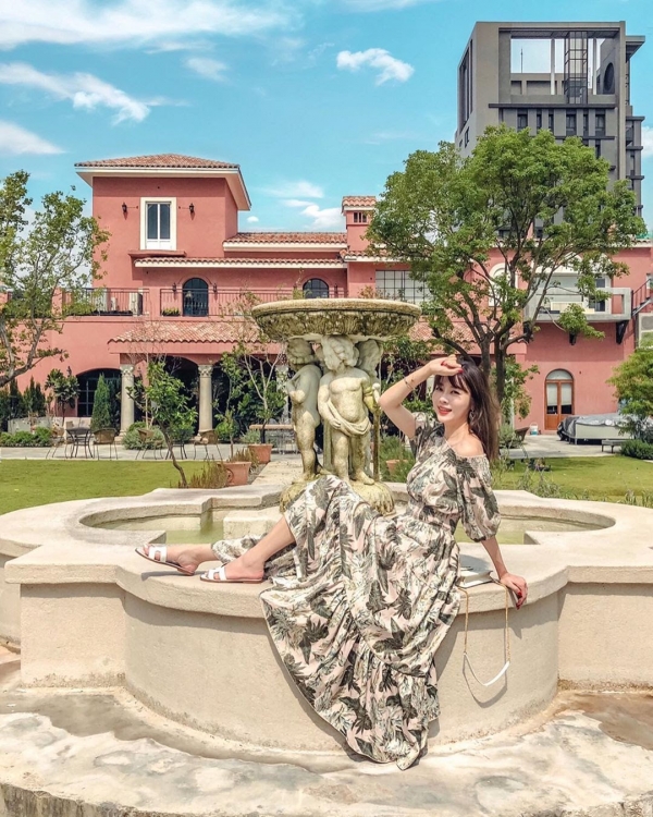 小義大利旗下的品牌「Bacitali」,耗費7年的時間慢慢建造而成,以威尼斯夏宮般的唯美建築,從門口就可以開始拍到後花園,占地廣大,後花園歐式噴水池加上粉橘色城堡,浪漫花園氛圍,超好取景的小歐洲造景~