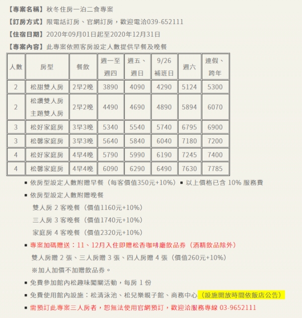 【一泊二食】秋冬住房專案