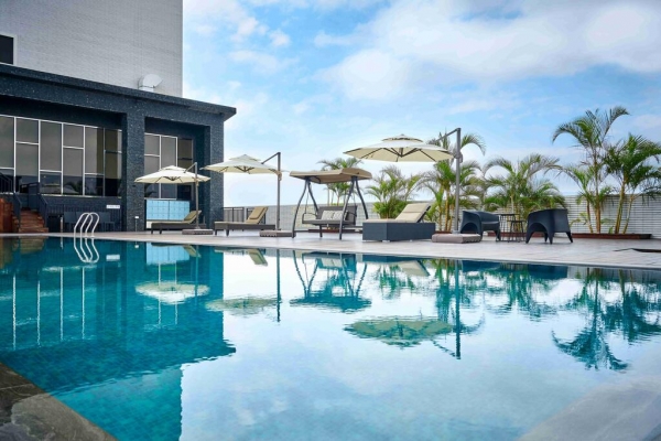 位於六樓露天的松清泳池,有如無邊際泳池之遼闊,讓旅人能盡情地徜徉在市景喧囂之上,舒展身心將自己歸零。