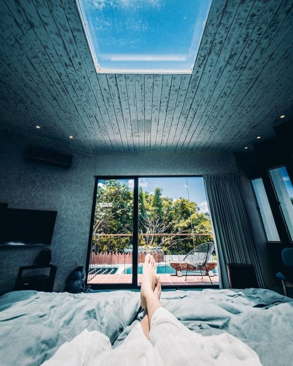 不過這麼夢幻的villa,就只有2間房,所以時常客滿,難訂程度堪比其他度假勝地,環境內部低調奢華,房間內擁有自動開關的天窗,夜晚躺著數星星,皆有半露天水池,搭配水上鞦韆,怎麼拍都超美!