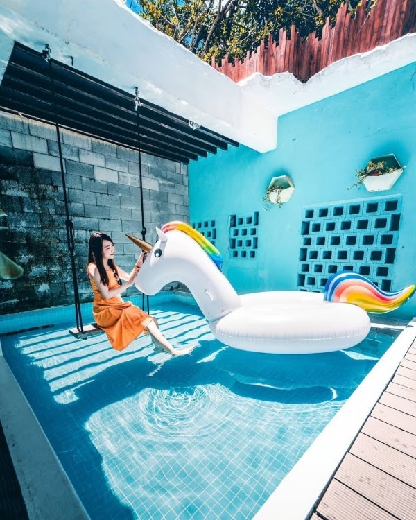 位於恆春老街巷弄中有一間超夢幻的villa」擁有舒適寬敞的空間,搭配超狂樓中樓設計,還有半露天泳池、水上鞦韆,甚至店家還有提供各種造型泳圈可以租借拍照,無法出國遊玩來這裡也能過過癮!