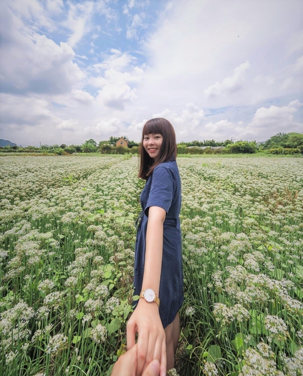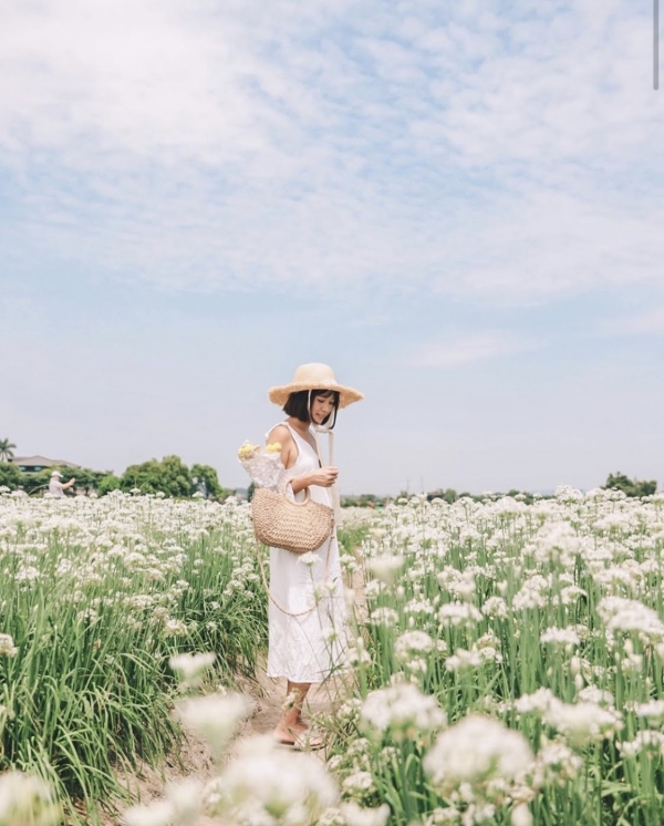 韭菜花季節從八月底一直到十月初,在桃園大溪飄著九月雪,純白色系的花朵搭配藍天不僅夢幻又浪漫!在平地不會下雪的台灣,不用出國就可以有這種偽裝下雪的感覺!