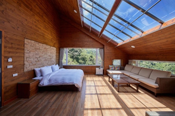 這間絕對為最受歡迎的房型,寬敞舒適的空間,還有超大的銀河天窗,夜晚躺著數星星,絕對是最浪漫的事情了!還有沙發可以休憩,窗景溫泉浴缸更是令人嘆為觀止,望出去就是廬山百萬山景。