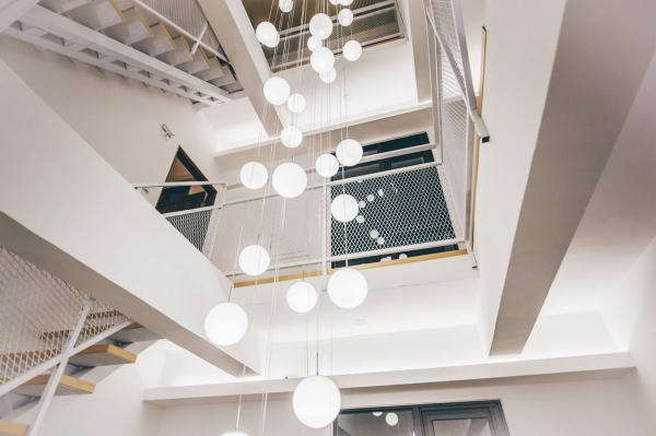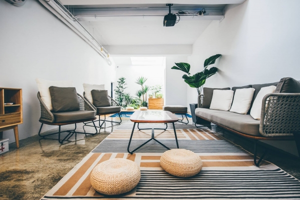 在客廳的中間設計挑高天井,可愛又明亮的燈球設計,視線與光線更為突出,典雅的設計,還擺放了許多綠色植物,雖說沒有高級設備,卻一點也不輸給高級飯店喔!