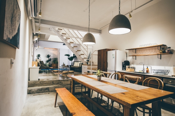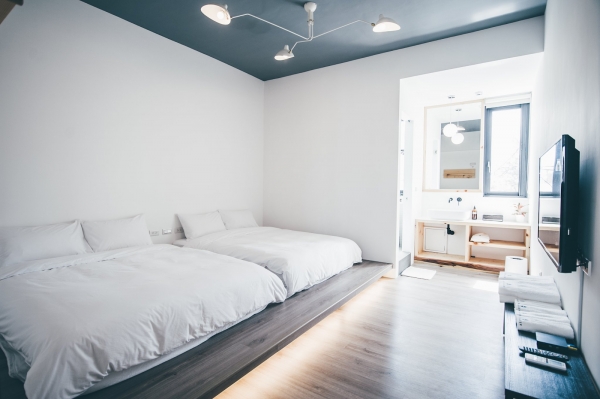 2樓以上皆為客房,獨棟四層樓的設計,總共有五間房,包含3間雙人房以及2間四人房,極簡工業風設計,沒有過多的裝飾,給人溫馨又舒適的住宿環境!