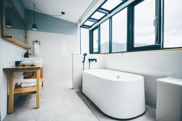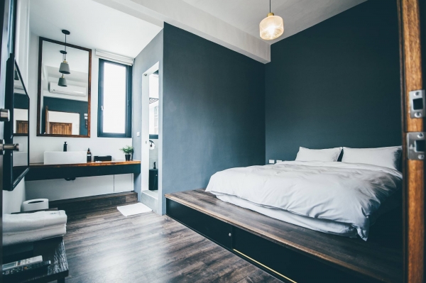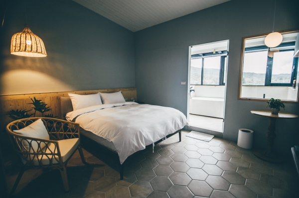 唯一一間在頂樓的房型,也是唯一附有大浴缸的房間,灰色調的基底,加上純白明亮色系,展現出對比強烈的色彩,窗景浴缸讓你邊泡澡邊賞美景!