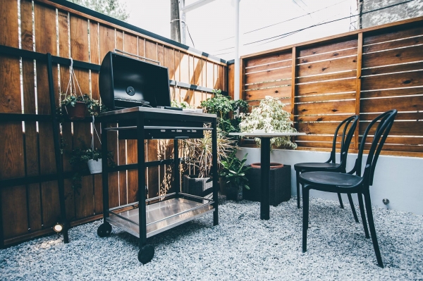還有戶外專屬的烤肉BBQ區,簡約的黑色系烤肉架與椅子,讓烤肉這件事也高級了許多!