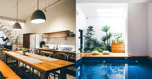 以北歐風設計一棟四層樓包棟民宿,庭院簡約造景,日造的烹飪區及用餐區為進屋內的第一空間,廚櫃的設計不是一般廚房格局,而有別以往的渡假villa,泳池直接設在室內,有一種隱私渡假情調!