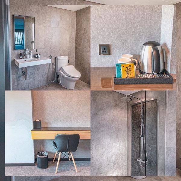 位於台中中區的一間旅店,鄰近一中商圈、中華路夜市,覓食非常方便,新穎的設備,環境乾淨整潔,特別的是房內擁有大片的斜角窗與簡單的空間設計,呈現出光與美的視覺饗宴,一早被陽光喚醒多麼浪漫!衛浴設備乾濕分離,淋浴間與馬桶相距較遠,不用怕弄濕馬桶,部分房型還有內嵌式浴缸。
