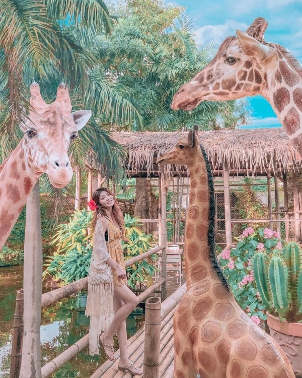 隱藏於市區裡的森林系復古風餐廳,一踏進去眼前是綠意盎然的湖畔,中央還有茅草屋及竹編小橋,最吸睛的是還擺放了一隻巨大長頸鹿,所有裝潢設計讓人誤以為來到峇里島度假,因而成為IG上爆紅的打卡點!