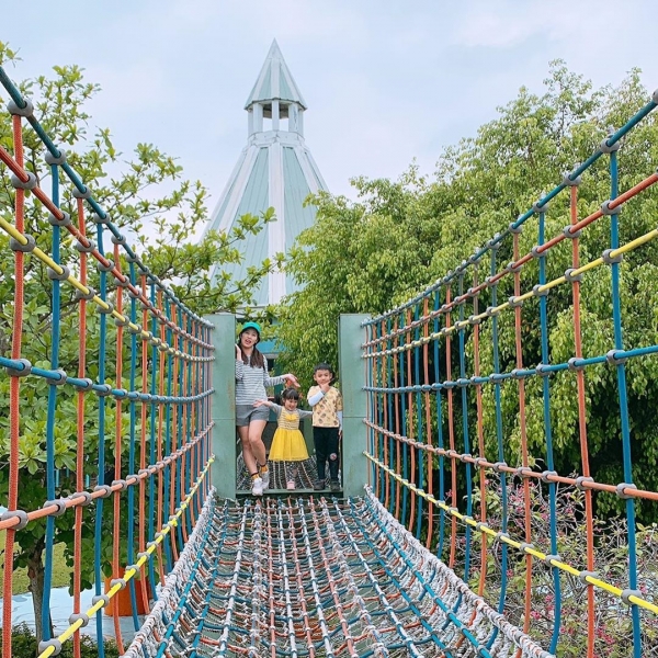 這裡就像是為情侶和親子打造的玩樂天堂,園區佔地寬敞,有豐富的藝術造景能玩拍,異國鐘塔、白色鋼琴、歐風水池和秘密花園,還有小朋友最愛的水上溜滑梯和闖關小遊戲