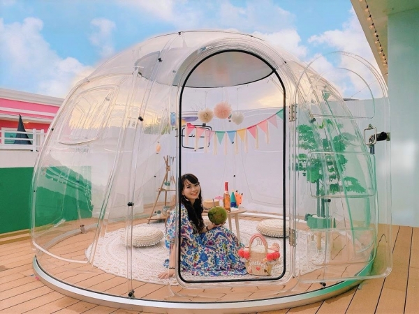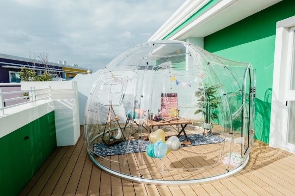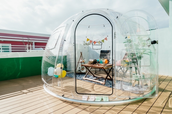 白天時可以到戶外的露台,欣賞台版威尼斯彩色街景,夜晚可以到星空屋裡面體驗禾旅宿準備的露營燈,享受在星空下被包圍的氣氛,超幸福!