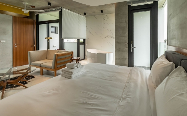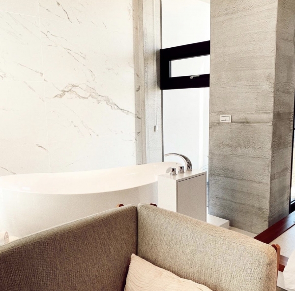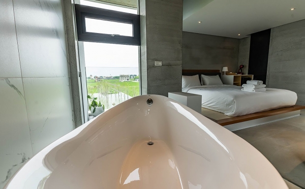 最特別的是浴缸的設計,沒有在浴廁裡面直接就坐落在房間裡,面對著大面的落地窗!就可以直接看到戶外的自然美景!