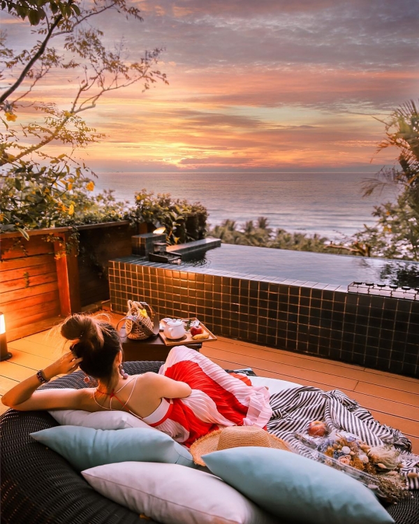 後湖水月坐落於四面群山擁抱的谷地裡,旁邊緊鄰無際的太平洋,谷地因為富含終年不竭的湧泉,原來是一大片的梯田農塘,因此後湖的園區內依照原本"梯田式"的地形造景,打造一階一階的池塘,恢復以前"水梯田"的景觀。