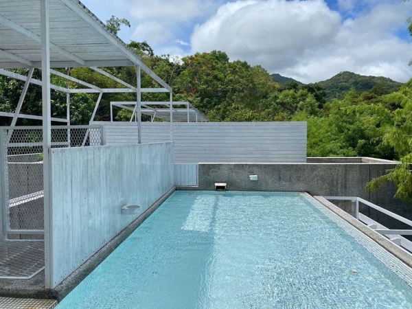 獨立的雙併別墅座落在梯田生態池畔,下崁的房屋設計遠遠望去猶如與自然環境融合一體,室內環繞L型的落地窗將室外綠意引入,波光水影彷彿就在身旁,走上樓印入眼簾的是無邊際的空中水池,延伸的水色和山光結合,給您一個隱身山居歲月的渡假時光!